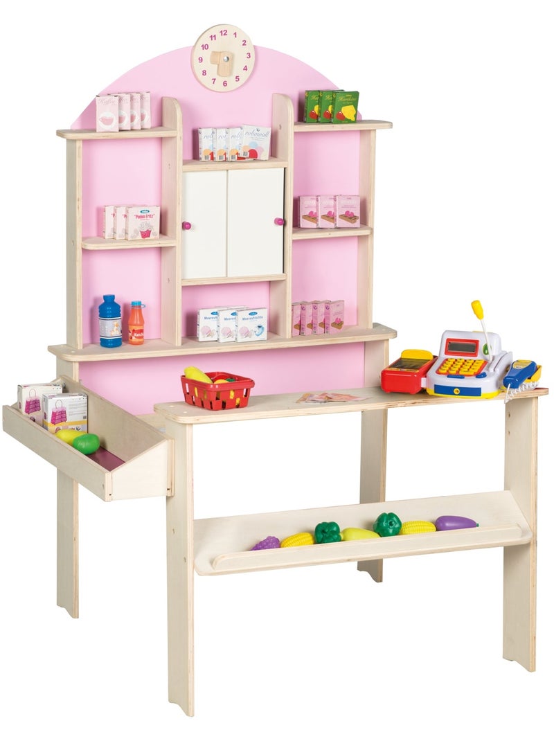 ROBA Negozietto in legno con orologio + cassa registratrice con microfono e accessori - Beige/Rosa