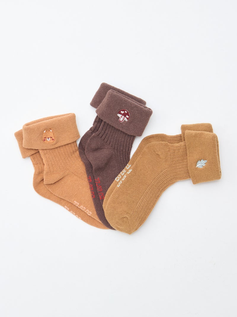 Set di 3 paia di calzini con dettaglio ricamato - Marrone