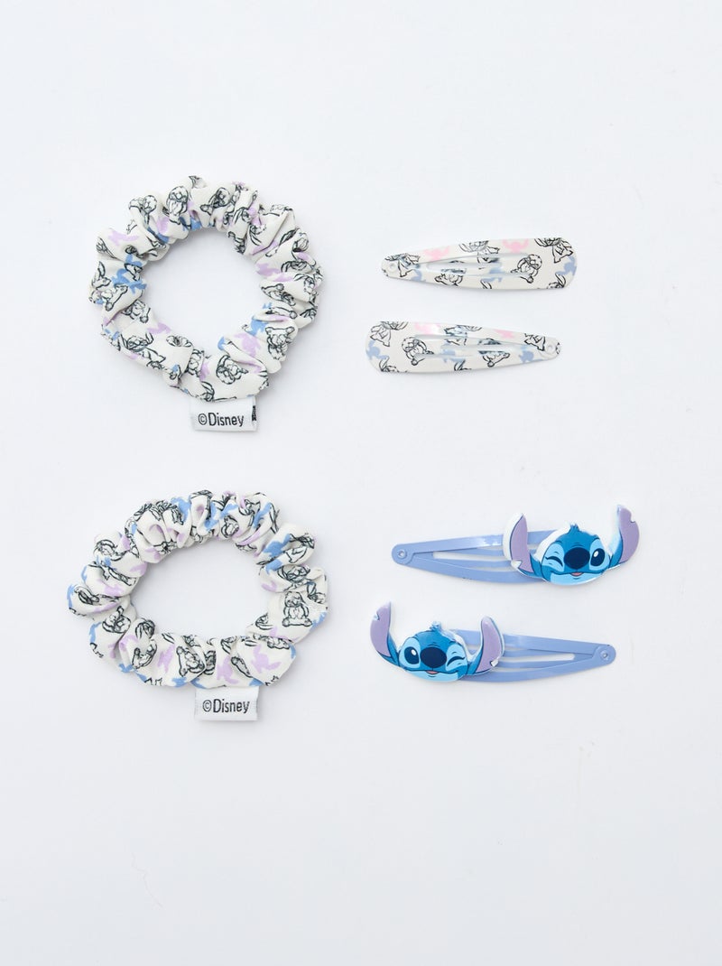 Set di 4 mollette + 2 elastici 'Stitch' - Blu
