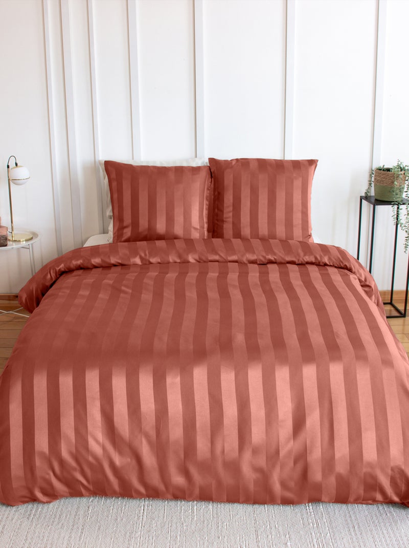 Set di biancheria da letto 3 pezzi in raso a righe sottili, copertina + federe - Arancione