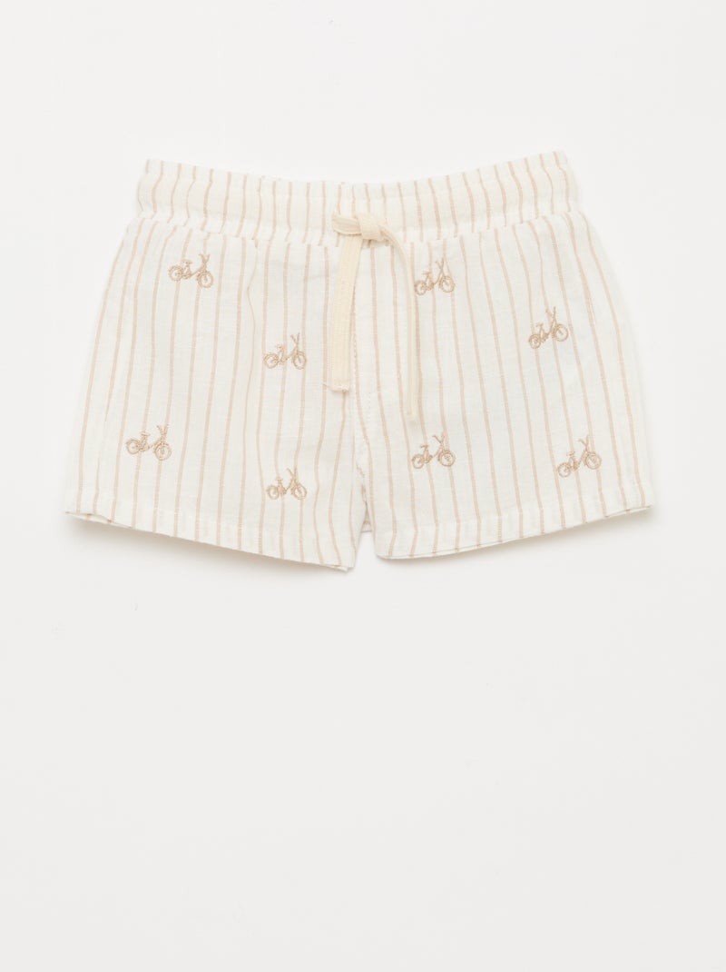 Short in misto lino a righe - Beige