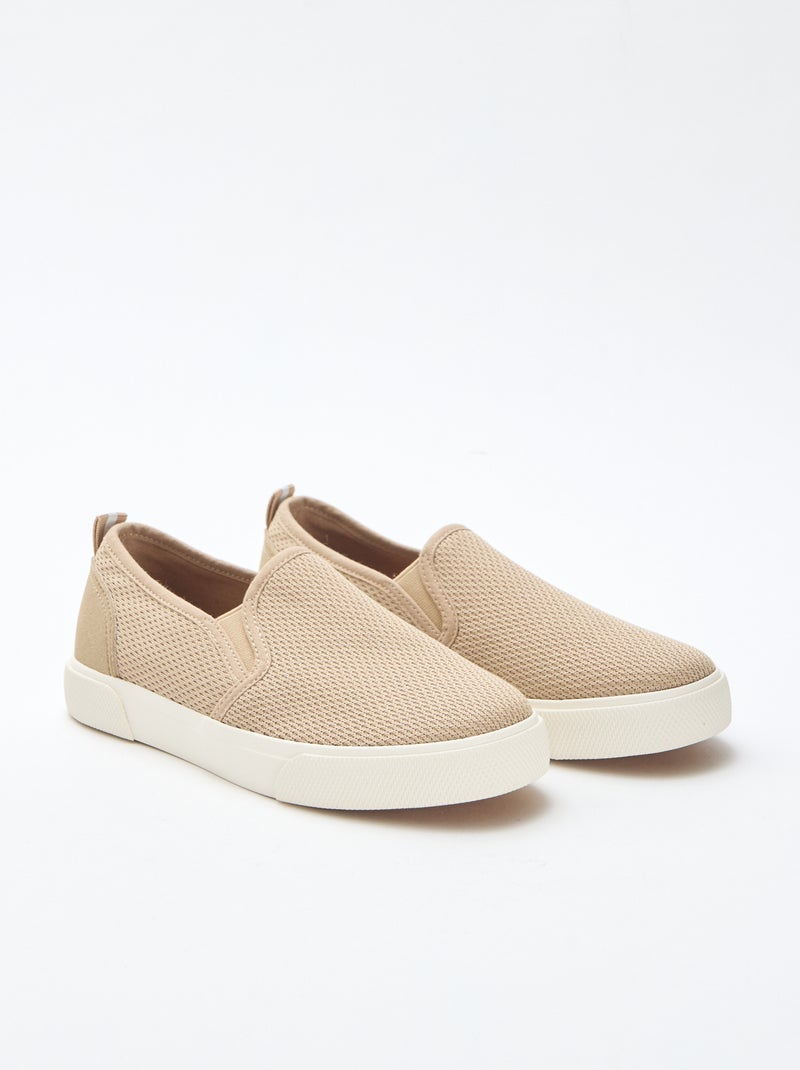 Sneakers basse slip-on in mesh tinta unita - Beige