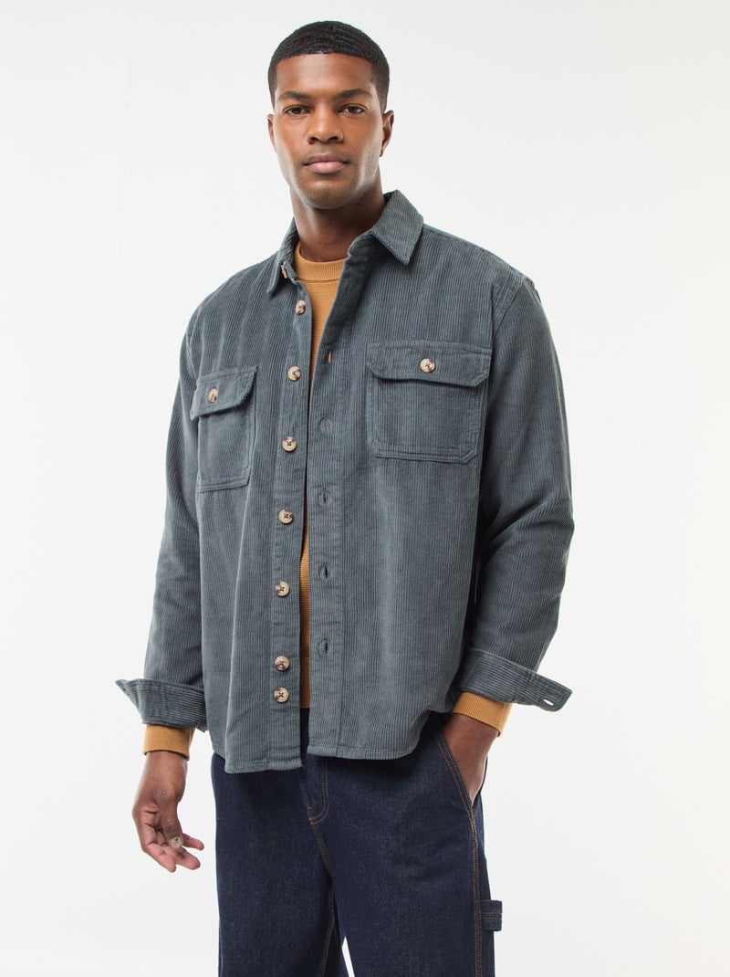 Sovracamicia in velluto di cotone tinta unita - Kaki