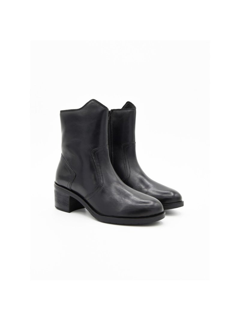 Stivaletto Con Tacco Pelle Naturale Purapiel - Nero