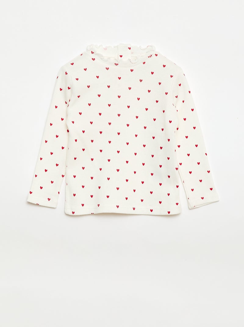 T-shirt a costine con colletto ondulato - Bianco