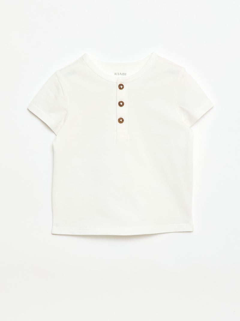 T-shirt con collo alla tunisina abbottonato - Bianco