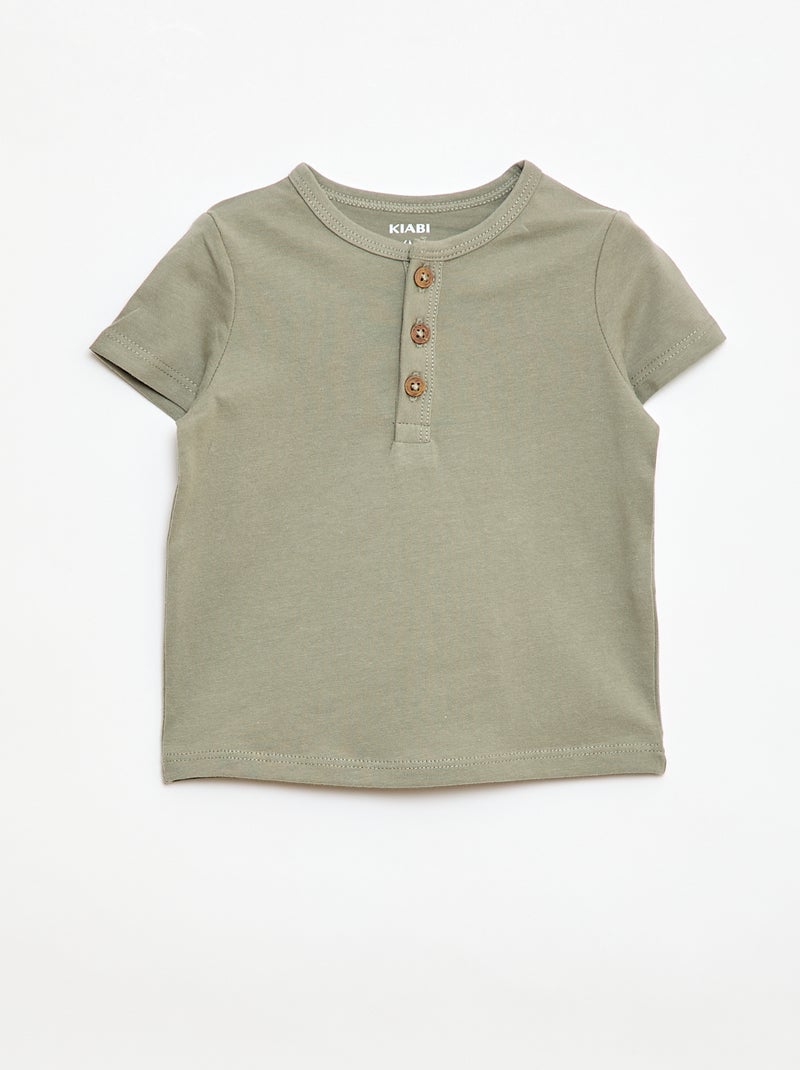 T-shirt con collo alla tunisina abbottonato - Verde