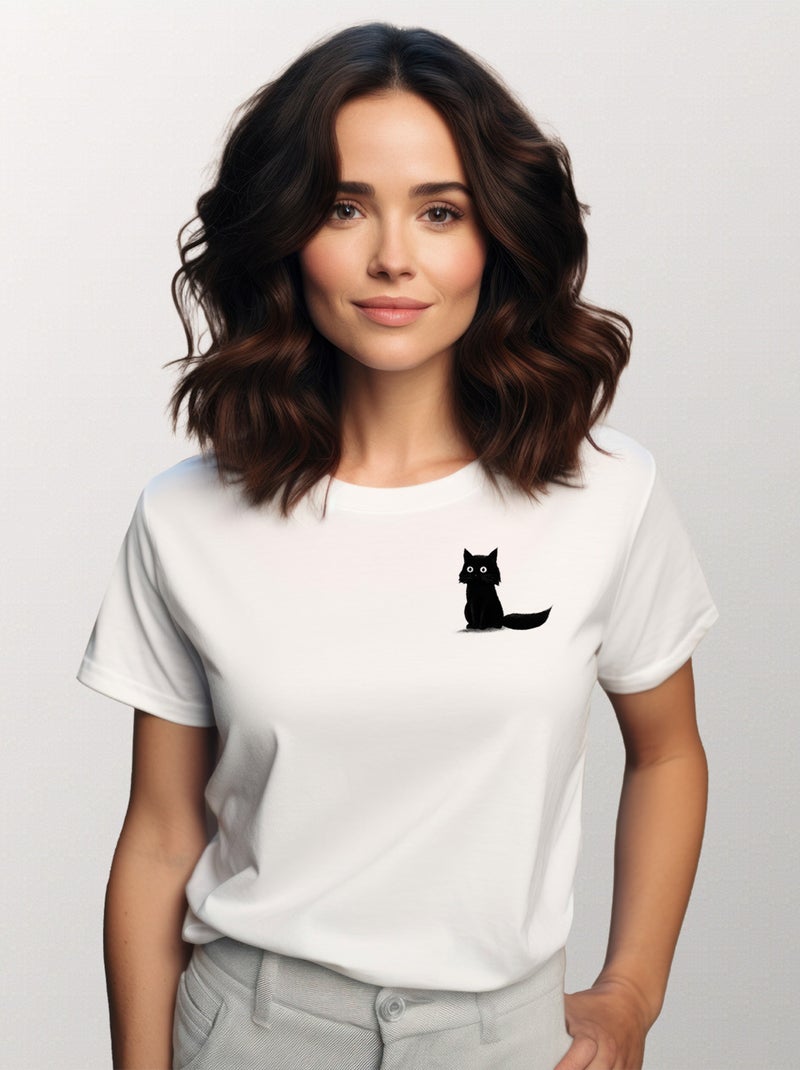 T-shirt Donna - SITTING CAT CŒUR - Bianco