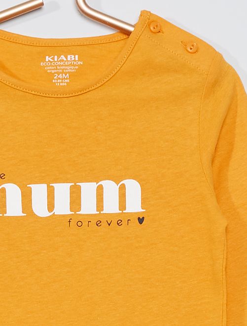 - Apertura sulla spalla con 2 bottoni Con questa nuova linea, Kiabi si impegna con stile nello sviluppo della sua gamma di prodotti "eco-sostenibili", promuovendo la sostenibilità ambientale nel settore tessile. Questo prodotto è realizzato al 100% in fibra di cotone proveniente da agricoltura biologica. Il cotone biologico è coltivato senza semi OGM con compost naturale che sostituisce i fertilizzanti chimici e i pesticidi. Anche tu puoi portare avanti questa iniziativa, lavando i tuoi capi a 30 °C o a freddo!
