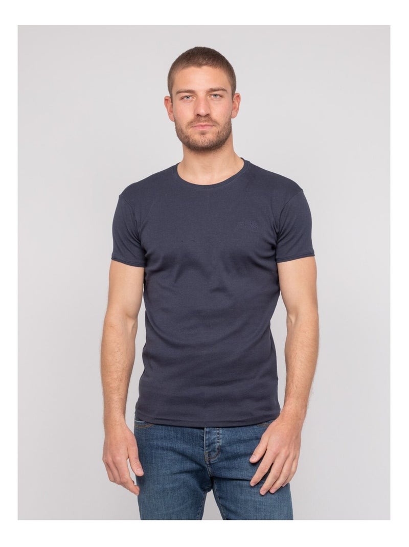T-shirt girocollo in cotone WARLOF - Blu marino