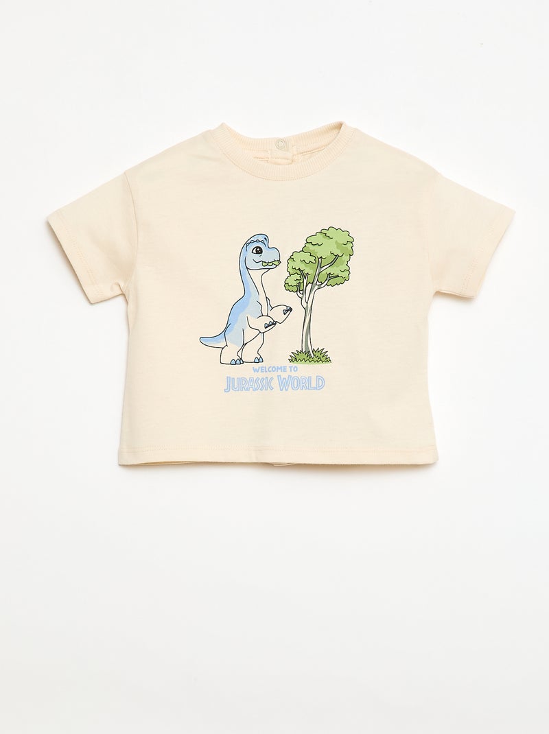 T-shirt in jersey con stampa 'Jurassic World' - Beige