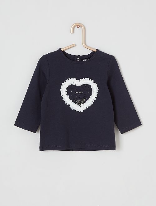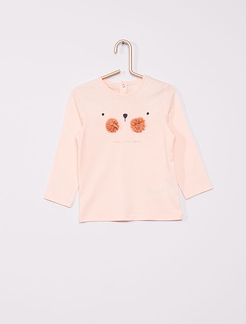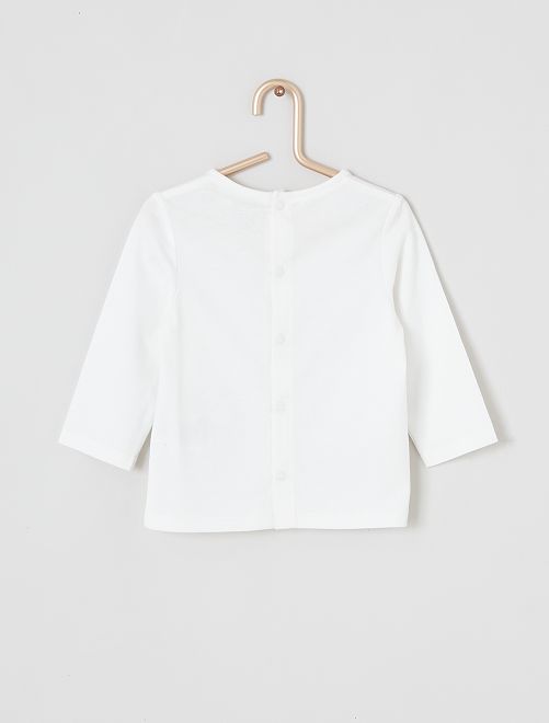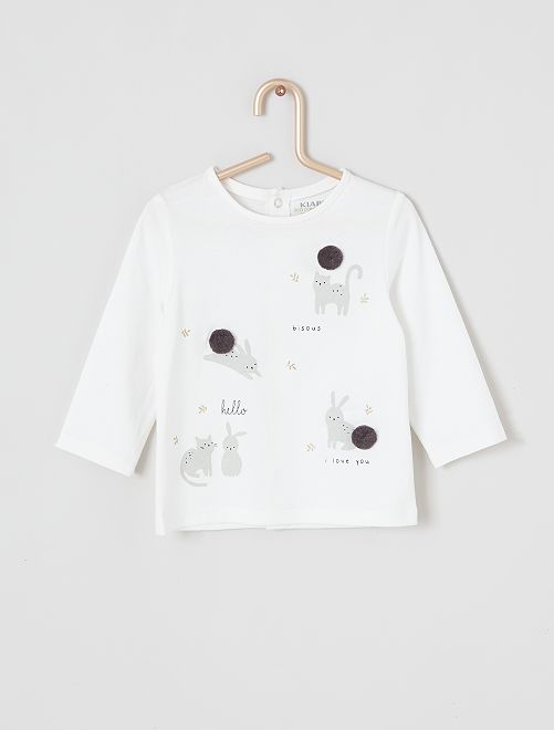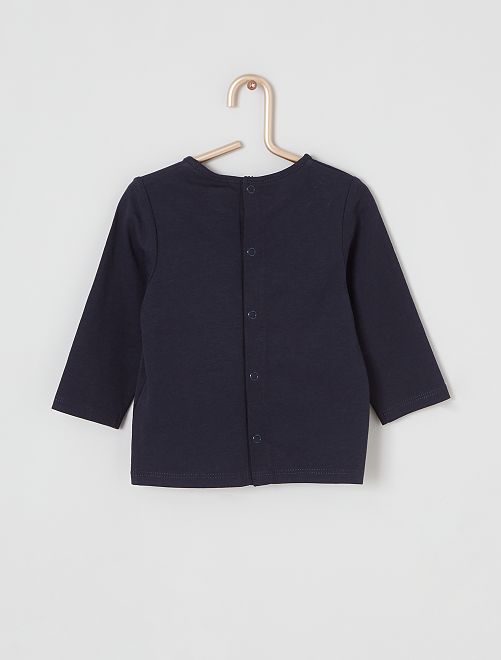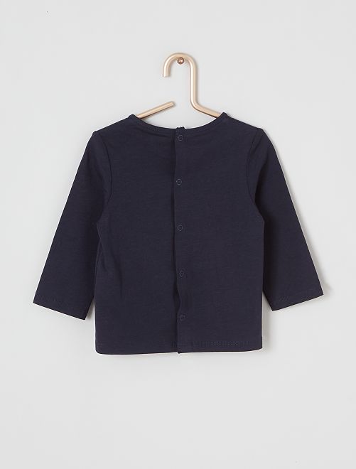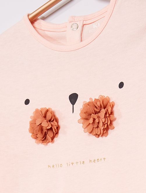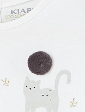 - Stampa 'topo' sul davanti Con questa nuova linea, Kiabi si impegna con stile nello sviluppo della sua gamma di prodotti 'eco-sostenibili', promuovendo la sostenibilità ambientale nel settore tessile. Questo prodotto è realizzato al 100% in fibre di cotone da agricoltura biologica. Il cotone biologico è coltivato senza semi OGM con compost naturale che sostituisce i fertilizzanti chimici e i pesticidi. Anche tu puoi portare avanti questa iniziativa, lavando i tuoi capi a 30 °C o a freddo!