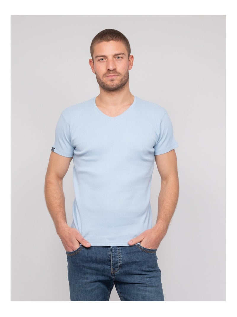 T-shirt scollo a V cotone a costine WILLIAM - Blu cielo