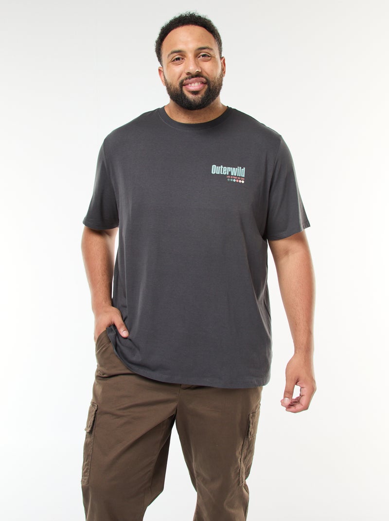 T-shirt stampata a maniche corte e collo rotondo - Grigio