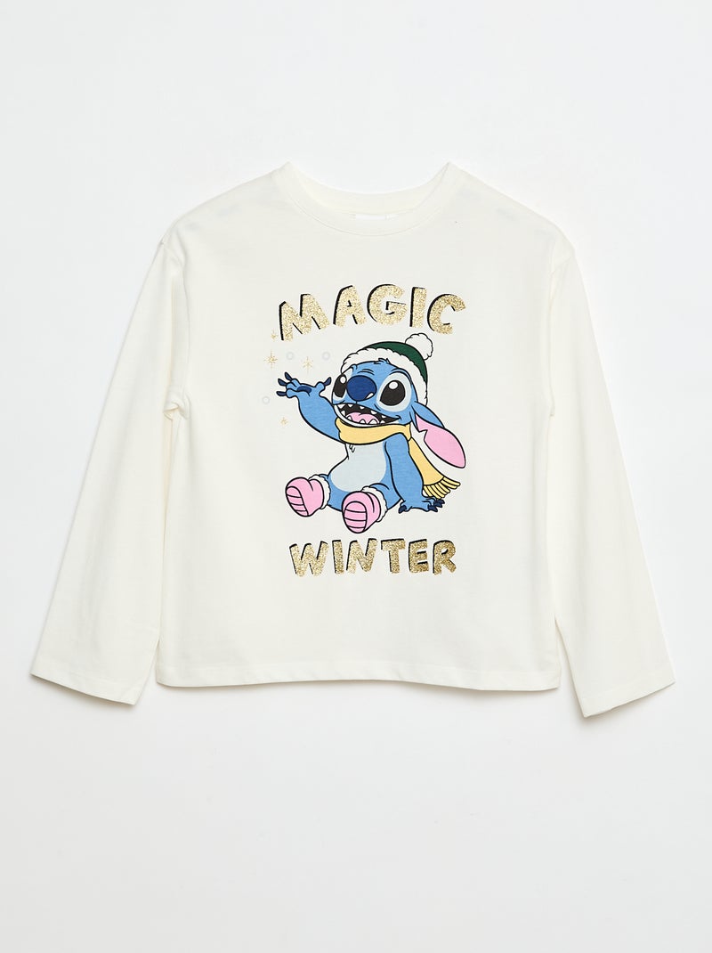 T-shirt stampata Natale 'Disney' 'Stitch' in jersey di cotone - Bianco