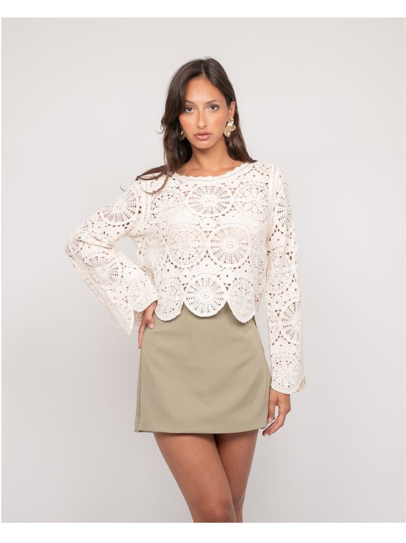 Top a maniche lunghe in pizzo FINARA - Ecru