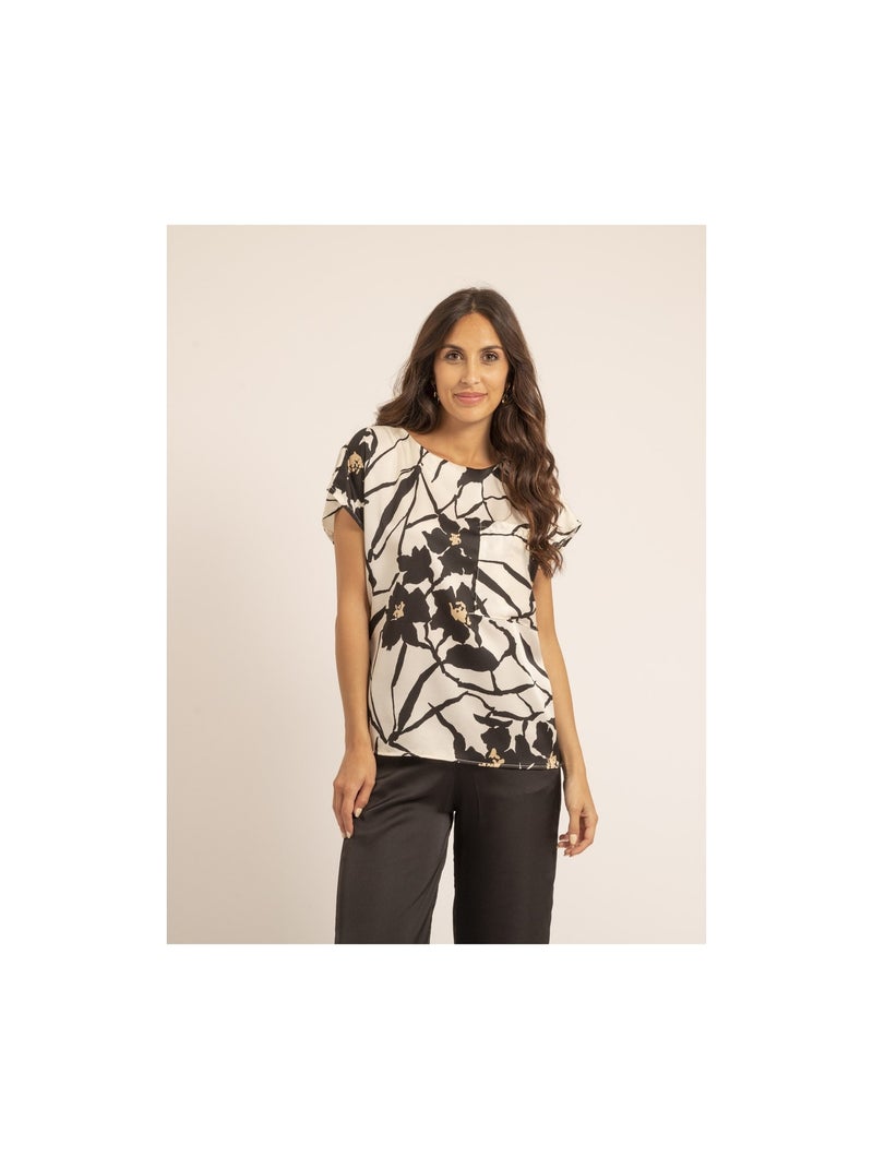 Top col rond motifs FIJELLE - Ecru