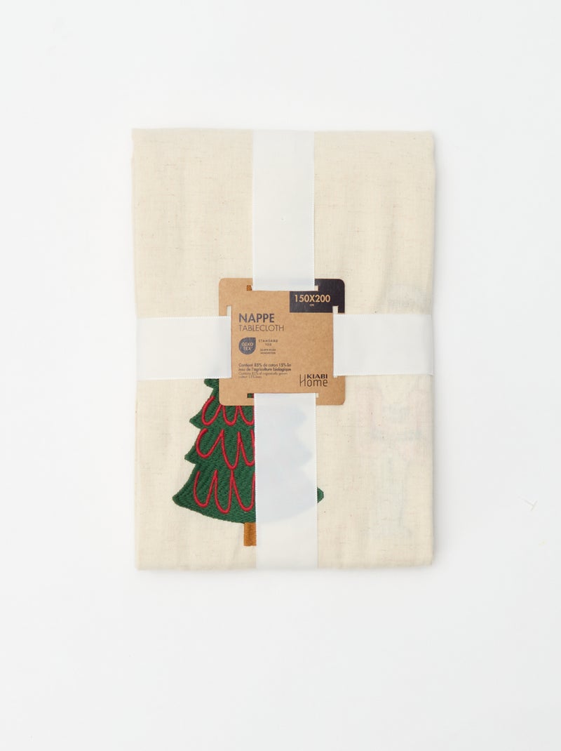 Tovaglia da tavola ricamata Natale in cotone e lino 150x200 - Beige
