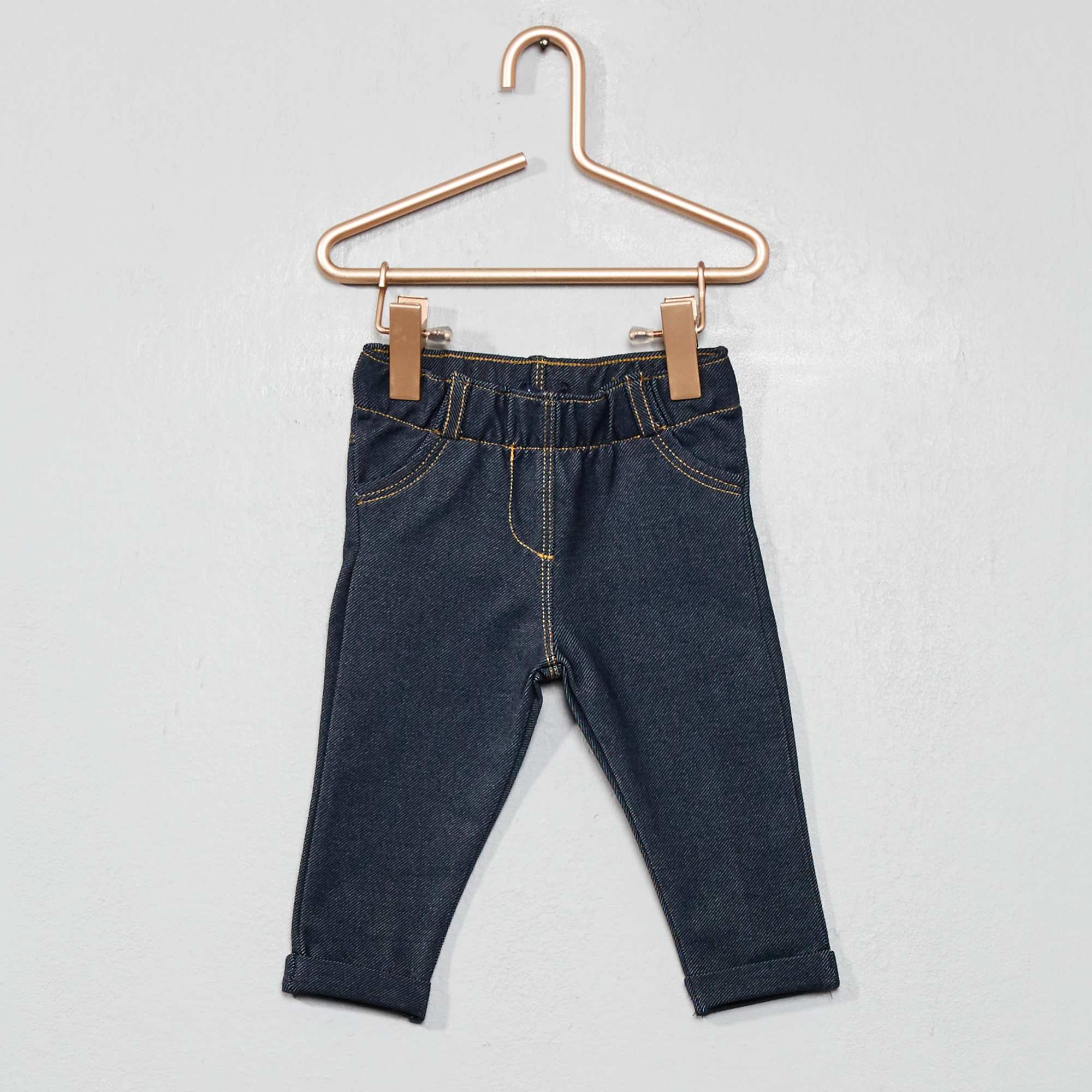 Piccolina ma già fashion! Treggings stretch, tasche cucite, elastico in vita, risvolto alla fine della gamba.