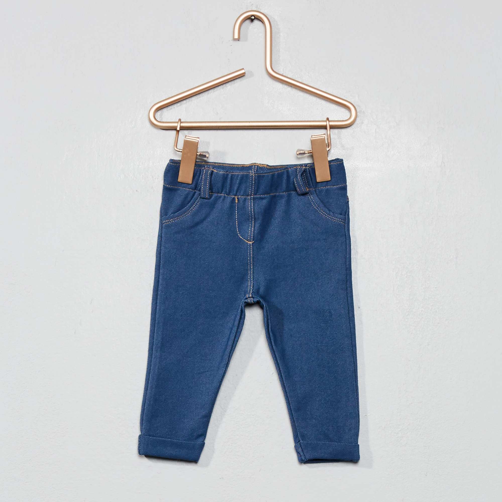 Piccolina ma già fashion! Treggings stretch, tasche cucite, elastico in vita, risvolto alla fine della gamba.
