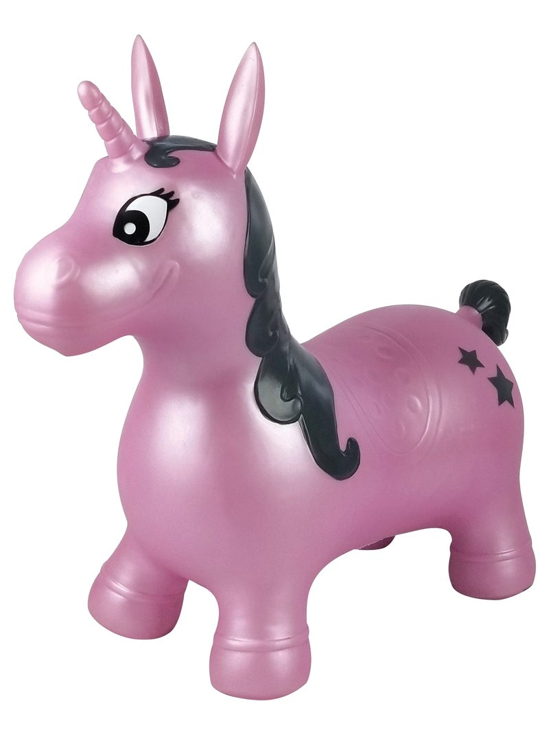 Unicorno salterino gonfiabile con tuta di peluche - Viola