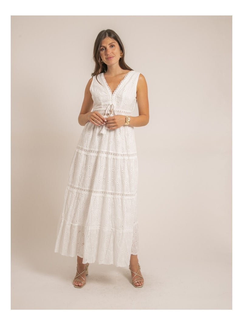 Vestito lungo con ricami inglesi IPANE - Bianco